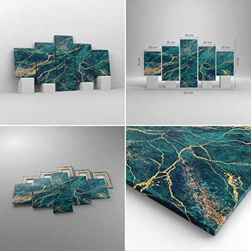 Quadro su Tela Astrazione Oro Turchese Stampe da Parete 125x70cm Quadri Moderni Soggiorno Camera da Letto Cucina Set 5 pezzi Piccoli Decorazione Murale Wall Art Canvas Grafica Immagini EA125x70-4564