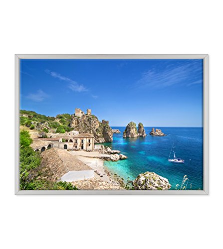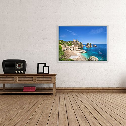 Quadro su Tela Canvas INTELAIATO - con Cornice - Tonnara di Scopello - Sicilia - 50x70cm - Stile Moderno Bianco - (cod.3341)