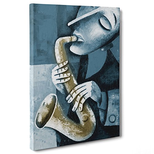 Quadro su Tela Canvas - INTELAIATO - Pronto da Appendere - Musica Jazz Sax - Illustrazione Disegno Effetto Olio Dipinto - 50x70cm - Senza Cornice - (cod.1167)