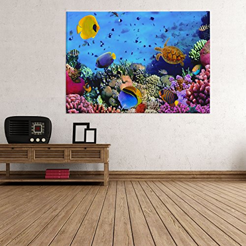 Quadro su Tela Canvas - INTELAIATO - Pronto da Appendere - Fondale Marino - Coralli - Barriera Corallina - 70x100cm - Senza Cornice - (cod.1094)