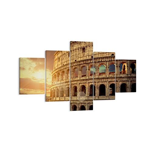 Quadro su Tela Coloseum Roma Architettura Italia Stampe da Parete 125x70cm Quadri Moderni Soggiorno Camera da Letto 5 pezzi Piccoli Decorazione Murale Wall Art Canvas Grafica Immagini EA125x70-2966