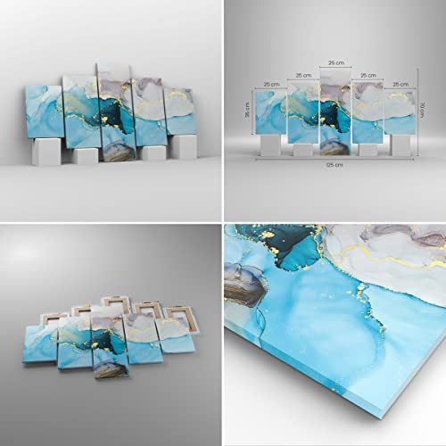 Quadro su Tela Marmo moderno blu Stampe da Parete 125x70cm Quadri Moderni Soggiorno Camera da Letto Cucina Set 5 pezzi Piccoli Decorazione Murale Wall Art Canvas Grafica Immagini EA125x70-4792