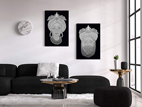 Quadro su Tela, Testa di Moro Uomo. Grigio Argento su Sfondo Nero. Design Siciliano. Misure e/o Colori Personalizzabili su Richiesta. (60 x 90 cm.)
