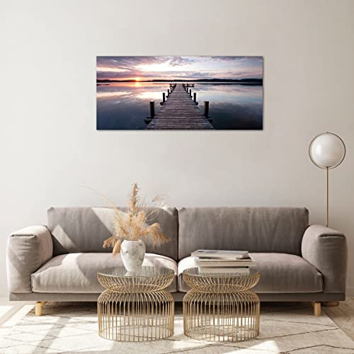 Quadro su Vetro 100x40cm Stampe da Parete in Vetro Ponte pedonale Lago Tramonto sera Grandi Decorazione Murale Camera da Letto Cucina 1 pezzo Quadri Moderni Soggiorno Immagini Wall Art GAB100x40-2635
