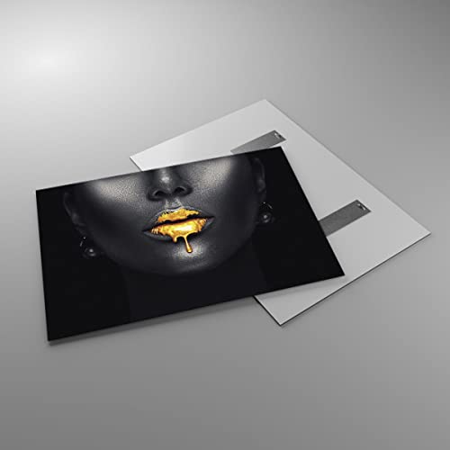 Quadro su Vetro 100x70cm Stampe da Parete in Vetro Oro Bocca Nero Grandi Decorazione Murale Camera da Letto Cucina 1 pezzo Quadri Moderni Soggiorno Grafica Immagini Wall Art GAA100x70-4460