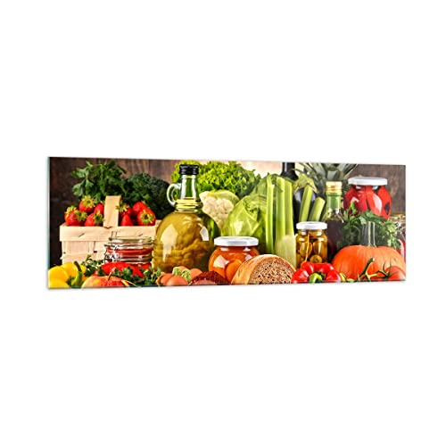 Quadro su Vetro 160x50cm Stampe da Parete in Vetro Il cibo verdure broccoli carne Grandi XXL Decorazione Murale Camera da Letto Cucina 1 pezzo Quadri Moderni Soggiorno Immagini Wall Art GAB160x50-3182