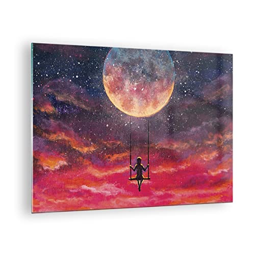 Quadro su Vetro Luna altalena donna Stampe da Parete in Vetro 70x50cm Quadri Moderni Soggiorno Camera da Letto Cucina 1 pezzo Piccoli Decorazione Murale Wall Art Grafica Immagini GAA70x50-5095