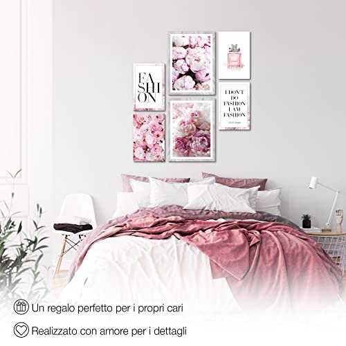 Quadros Fiori Di Moda - Nessuna Cornice Necessaria - Collage Moderno Fiori Rosa - Camera Da Letto Del Soggiorno - N015463a