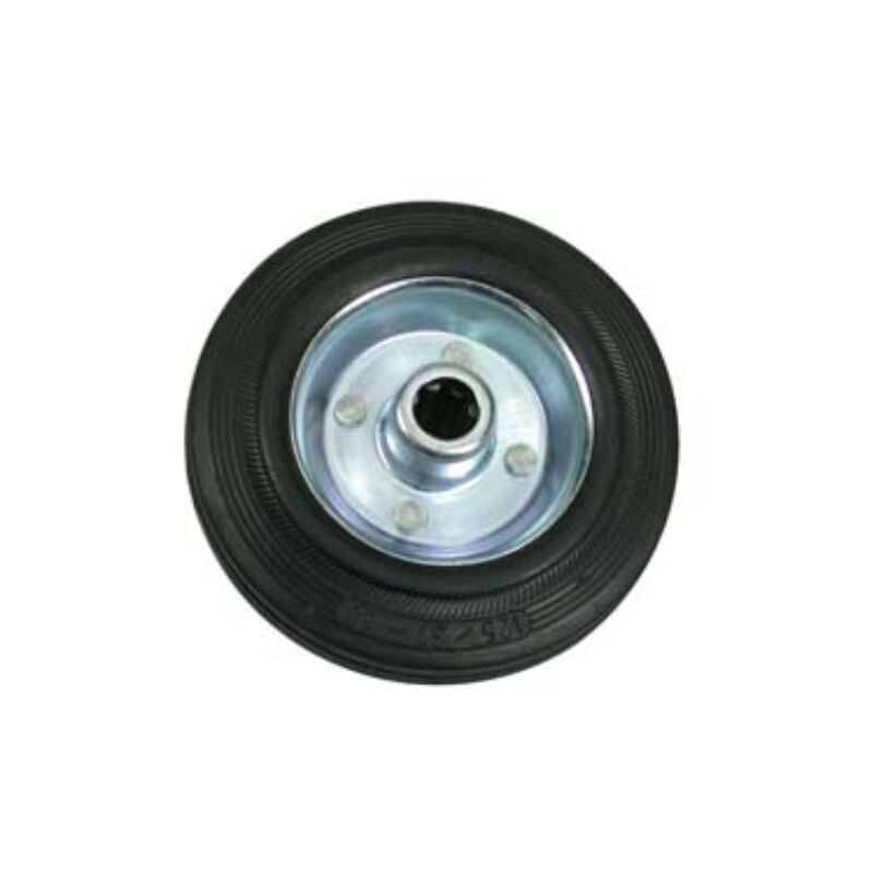Ø mm.100 in gomma piena nera, con cuscinetti, nucleo ruota in lamiera stampata e zincata Categoria merceologica: Ruote - Ferramenta - Ruote industriali