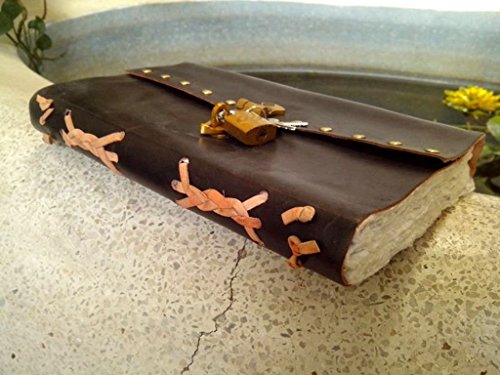 Qualityart - Diario in pelle fatto a mano, con vero lucchetto con chiave, perfetto per i disegni, 23 x 13 cm