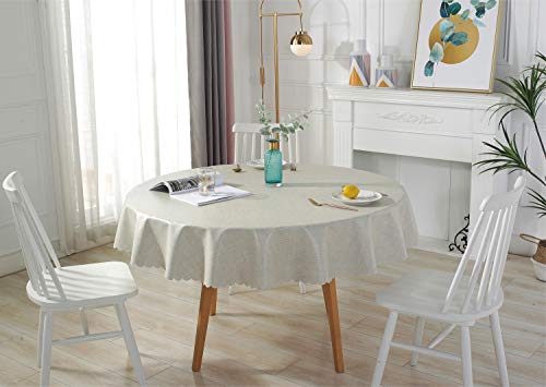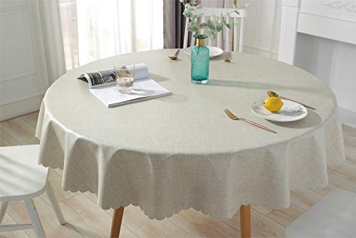 Qualsen Tovaglia Antimacchia, Tovaglia Rotonda Impermeabile, Protegge Il Tavolo per Cucina, Salotto, Lavabile, lino, 140 cm, rotonda