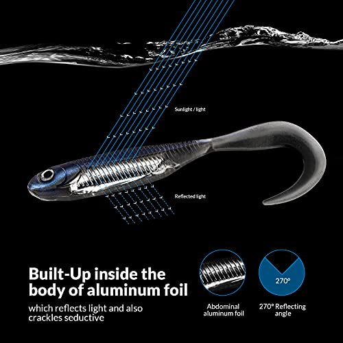 1. Azione di nuoto realistica: il design a paddle tail con materiale super morbido offre un'azione di nuoto estremamente allettante per attirare i pesci affamati. Imita l'aspetto e il movimento di un vero pesce da pesca, proprio quello che i pesci affamati non possono ignorare.