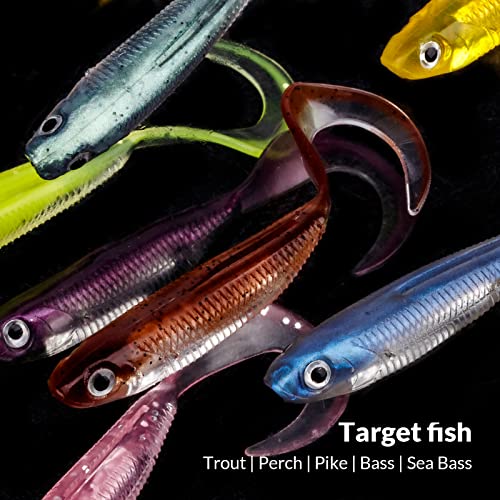3. Facile da configurare: puoi pescare il pesce di gomma Shad con un gancio senza peso, un jighead o un piccolo amo pesante, o trasformarlo come dropshot, carolina, Texas, traballante, pazzo con un gancio gap extra largo.