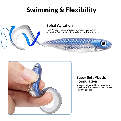 2. Minnow Grubs con dettagli realistici: Questo shad minnow sbriciola l'esca in plastica morbida con dettagli ultra realistici, i pesci bersaglio non saranno in grado di ignorarlo. Le esche in plastica morbida Shad Minnow includono un modello di scala di pesce altamente dettagliato, un piatto di branchie di pesce e occhi 3D ultra realistici. Con pellicola flash nella pancia per fornire riflessione sotto l'acqua che è buono nei giorni in cui avete bisogno di quel flash, quindi attirerà più morsi.