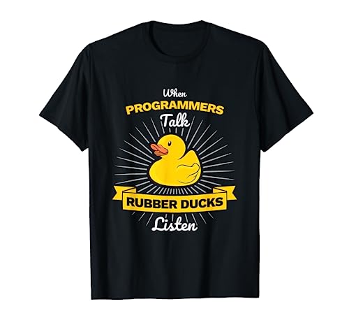 Se si utilizza un Anatra di programmazione per il debug del codice, questo divertente disegno di gomma Duckie è l'ideale per voi! Ogni programmatore lo sa, a volte è difficile trovare un bug e un'anatra di gomma può aiutarti, se ne parli e spieghi il codice.
