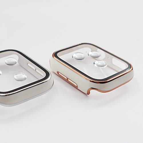 Quanerba (2 Pezzi) Cover per Apple Watch 40mm Custodia Serie 6/5/4/SE, Vetro Temperato Due Colori Custodia Rigida Pellicola Protettiva per iWatch(40mm Nero Oro rosa/Bianca Oro rosa)