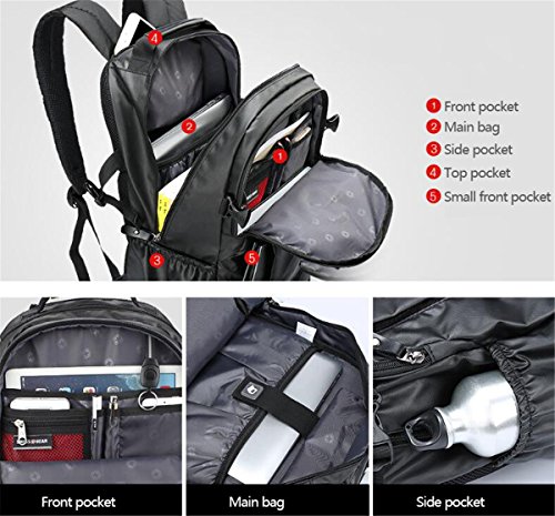 Quanjie Uomo Vintage Zaino 15.6 Pollici PU Pelle pc Laptop Backpack Casual Borse Viaggio Impermeabile Business Zainetto Antifurto Durevole Scuola Zaini (nero)