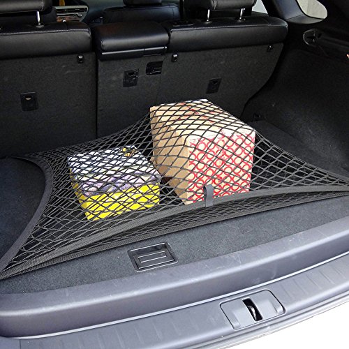 Quanjucheer - Rete da carico posteriore in nylon per auto, organizer universale per bagagliaio con 4 ganci, per tutte le auto, dimensioni 70 x 70 cm, colore: nero