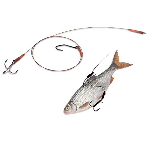 Rami pronti per la pesca di galleggianti, dotati di ganci in acciaio al carbonio di alta qualità legati a un setale in acciaio camo insolito da 14 kg. Qui è stata posta grande attenzione alla lavorazione di alta qualità, ogni collegamento a manicotto è realizzato singolarmente a mano e finito.