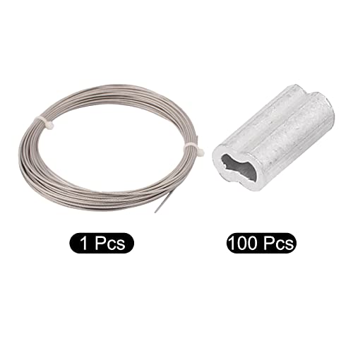 QUARKZMAN Acciaio Filo Cavo Corda 10M Lunghezza con 1mm Diametro Alluminio Crimpatura cerchio Manicotto per Sollevamento 1 Set