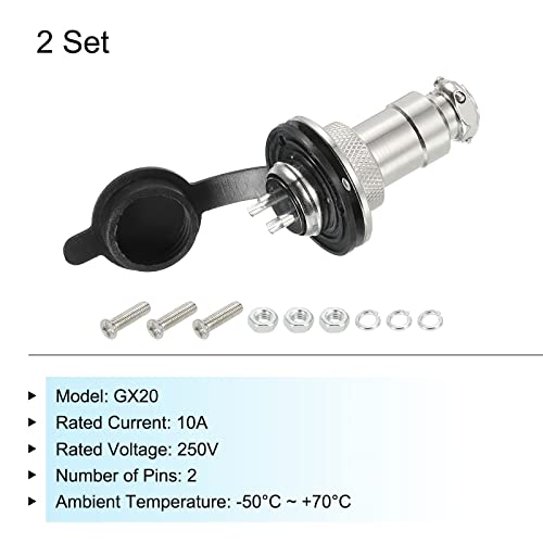 QUARKZMAN Aviazione Connettore GX20 2 Perni 20mm Argento Maschio Femmina Pannello Metallo Aviazione Filo Connettore con Aviazione Spine Cappuccio per Aviazione,Alta Velocità Ferrovia 2pz