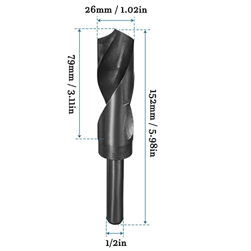 QUARKZMAN 1/2" Codolo 26mm Trapano Punta x 1 Pezzo Alta Velocità Acciaio 9341 Ridotto Gambo Torsione Trapano Punte per Industria Casa Alluminio Metallo, [Nituro Rivestito, Nero]