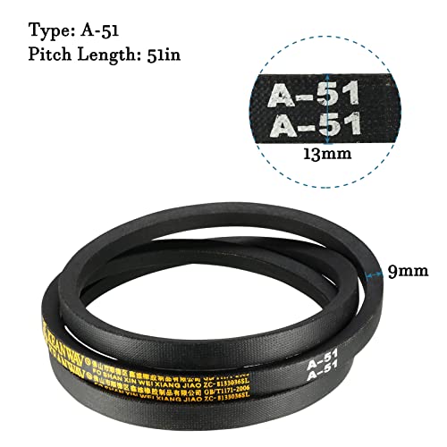 ! In primo piano - Cinghia trapezoidale di trasmissione A-51 con lunghezza del passo da 51 pollici, nera.