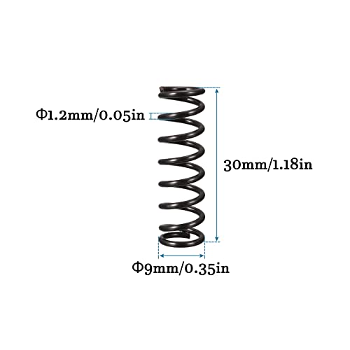 QUARKZMAN Piccolo Compressione Molla x 10pz Molla Acciaio Estensione Molla per Famiglia Applicazioni, [ Nero, 1.2mm Filo Diametro, 9mm OD, 30mm Libero Lunghezza]