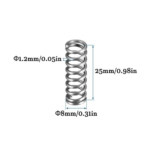 QUARKZMAN Piccolo Compressione Molla x 15pz Molla Acciaio Estensione Molla per Famiglia Applicazioni, [ Argento Tono, 1.2mm Filo Diametro, 8mm OD, 25mm Gratis Lunghezza]