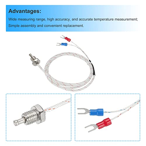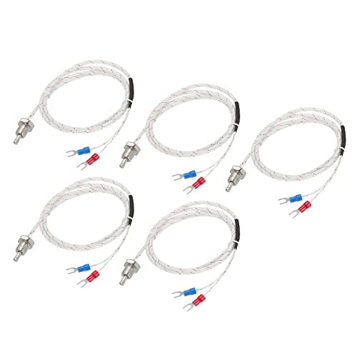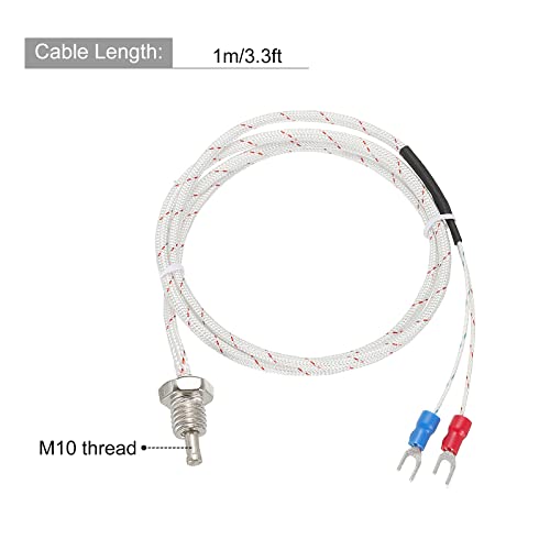 QUARKZMAN Tipo Temperatura Sensore 5pz M10 Vite Temperatura Sonde Termocoppia 3.3piedi Filo isolato da 0 a 800°C(da 32 a 1472°F)