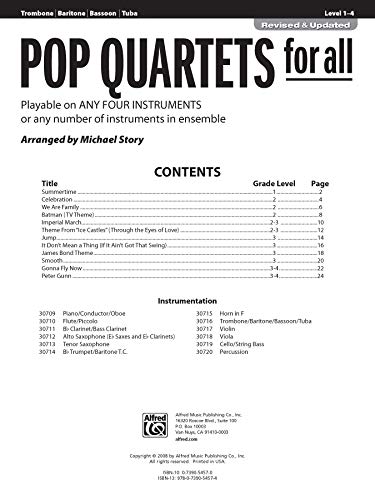 Pop Quartets for All: Trombone, Baritone, Bassoon, Tuba: Playable on Any Four Instruments or Any Number of Instruments in Ensemble
