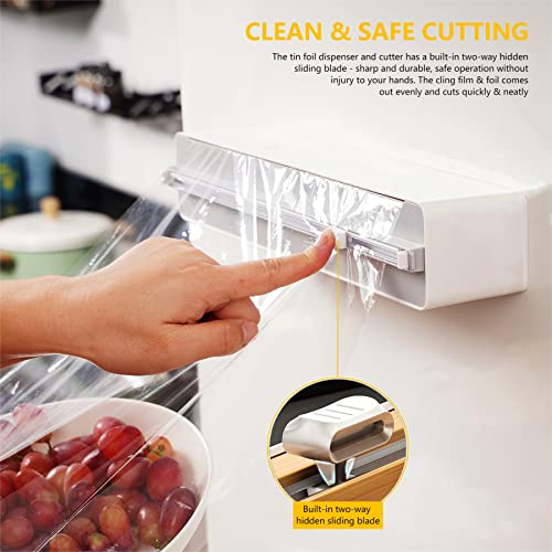 Quasziwa Dispenser Pellicola e Alluminio a Parete - Taglia Pellicola da Cucina di Aspirazione Magnetica, Aggiornamento Distributore di Carta Stagnola/Alluminio Film con Taglierine Affilate, Bianco