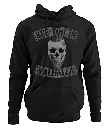 Quattro Formatee See You in Valhalla vichinga Viking Odin Thor Nordmann Wolf, mitologia nordica Skal Norse D Felpa con cappuccio Nero XL