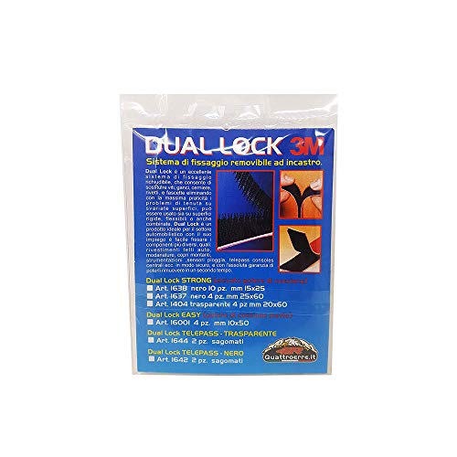 4R Quattroerre.it - 1644 - Dual Lock Telepass 3M Sistema di Fissaggio Removibile a Incastro, Trasparente, 2 Pezzi