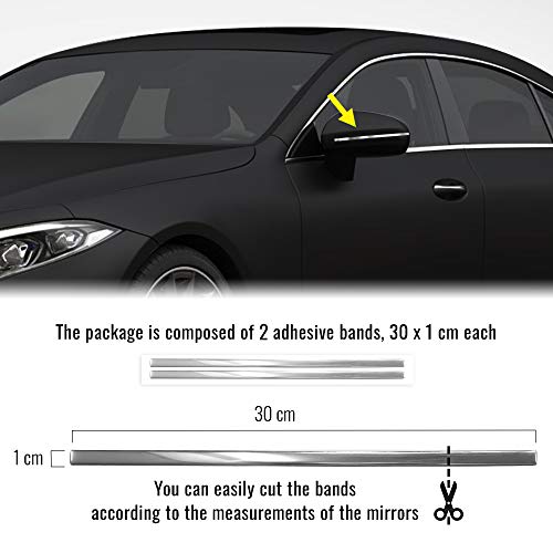 4R Quattroerre.it Strisce Adesive 3D Cromate Protettive per Specchietti Auto, 1 x 30 cm, 2 Pezzi