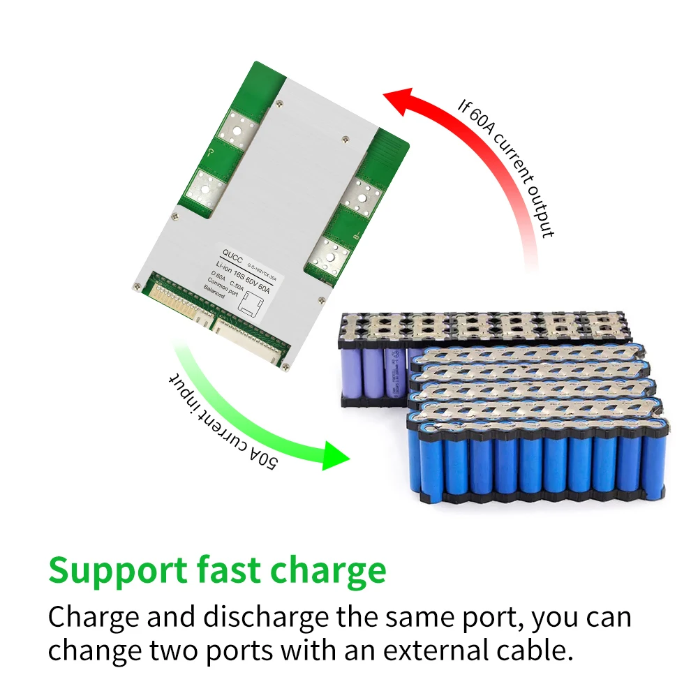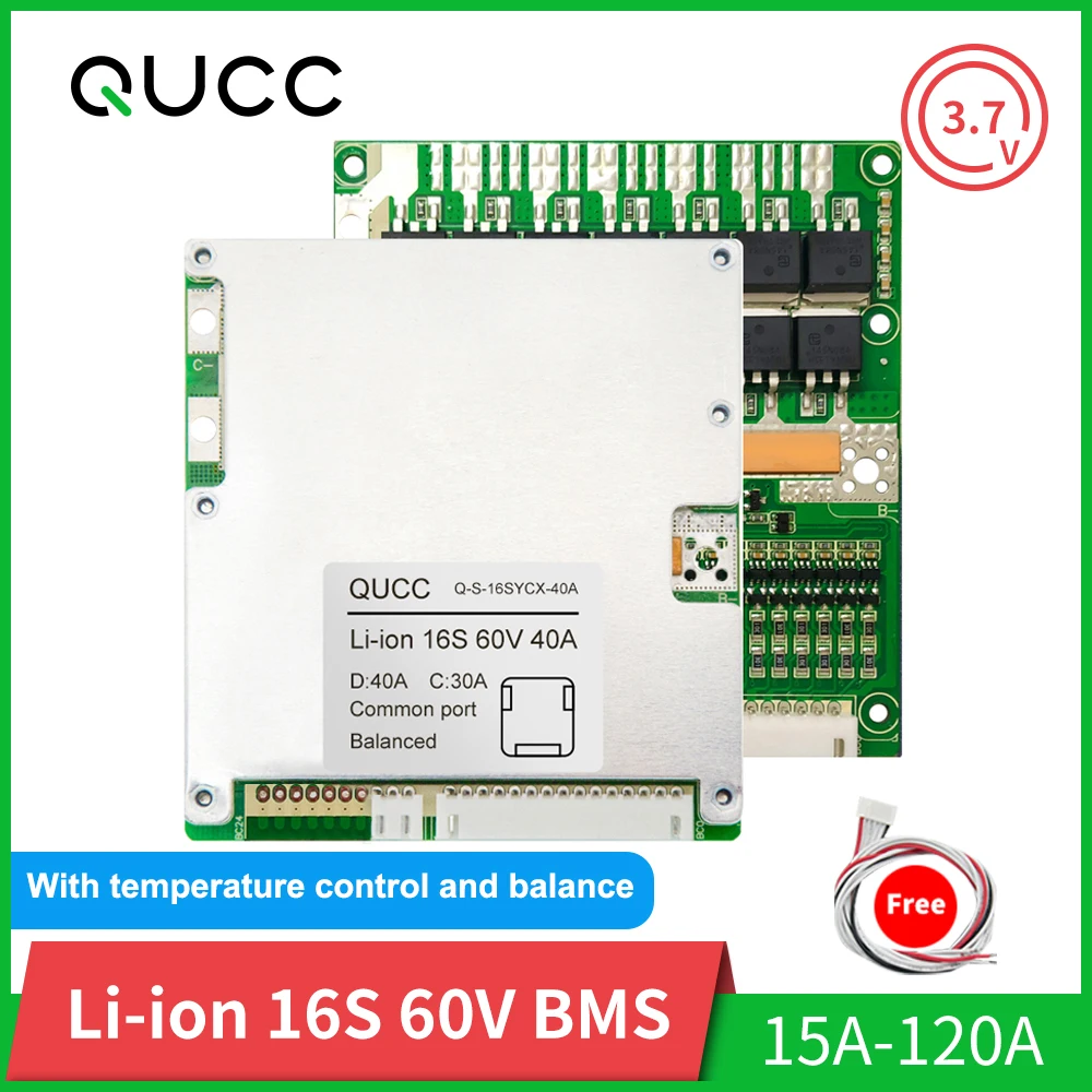 QUCC BMS 16S 60V 18650 Balancer 120A 100A 60A 50A 40A 30A 20A Lithium Battery Protection Board PCB for Electric Vehicle Ebike