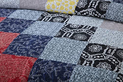 Qucover Copriletto Trapuntato in 100% Cotone Matrimoniale, Copriletto Trapuntino Patchwork, Copriletto con Motivo Piastrella 230 x 250 cm con Due Federe 50 x 70 cm