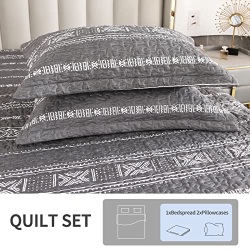 Qucover Copriletto Trapuntato Matrimoniale 220 * 240cm in Microfibra,SET 3Pz Copriletto Trapuntatura con Stile Boemia Grigio,Copriletto Trapuntino con 2 Federe