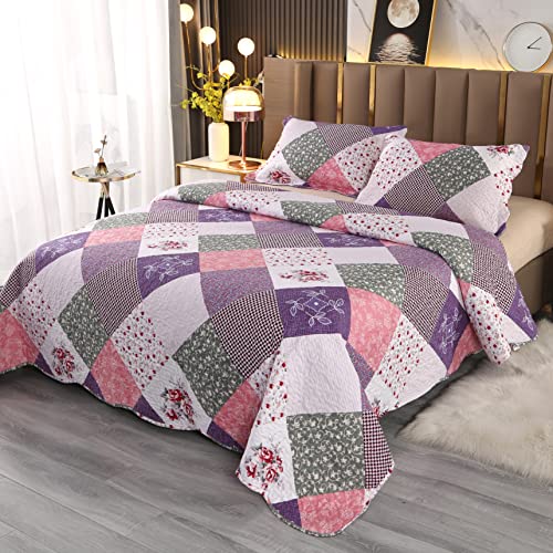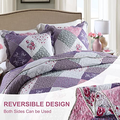 Qucover Trapunte copriletto viola king size 230 x 250 cm Set biancheria da letto reversibile con motivo floreale con 2 federe 50 x 70 cm