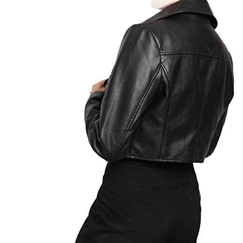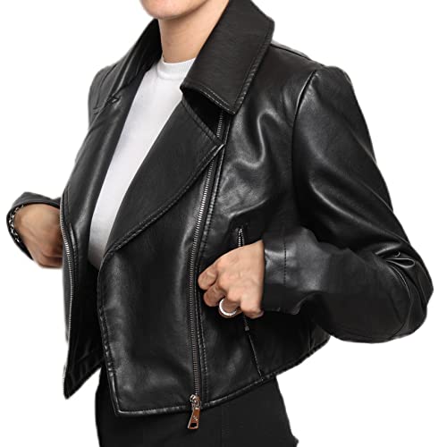 QUEEN HELENA Giacca in Ecopelle Biker Giubbetto Corto Giacchetta Leggera Casual Morbida Donna Y3001 (XL, Nero)