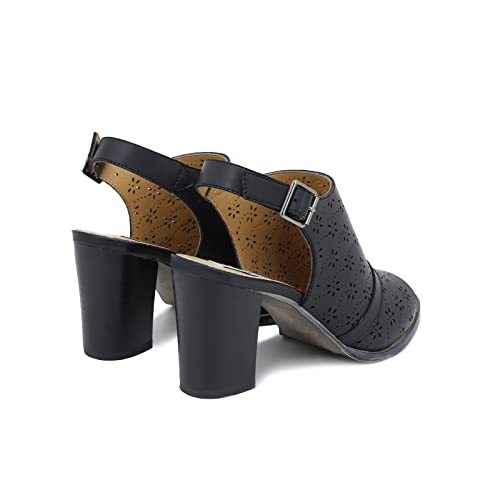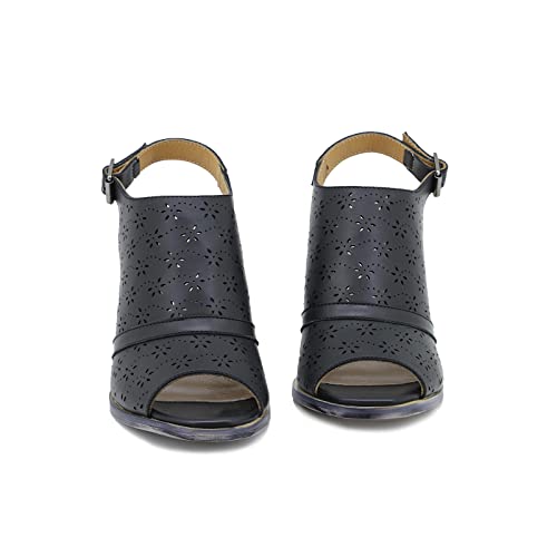 QUEEN HELENA Sabot con Tacco Medio Sandali Traforati Casual Donna ZM9018 (Nero, Numeric_39)