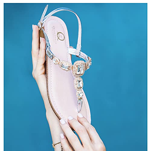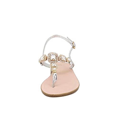 QUEEN HELENA Sandali Aperti Infradito Gioiello Bassi con Strass Pietre Tacco Donna Y3028 Argento 40