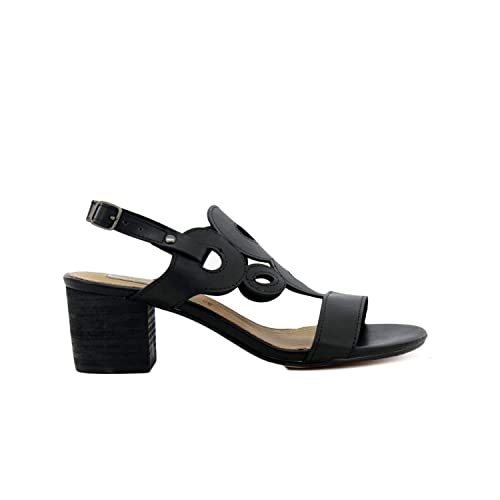 QUEEN HELENA Sandali Bassi con Tacco Aperti con Cinturino Donna ZM6085 Nero 35