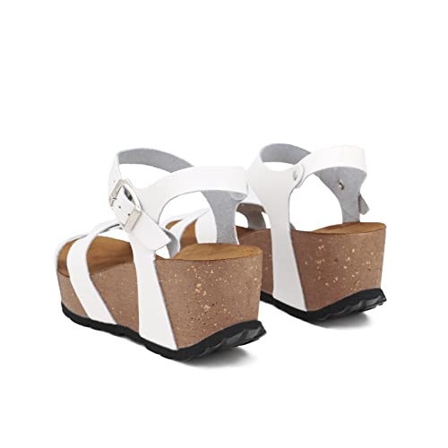QUEEN HELENA Sandali di Pelle Platform Infradito con Zeppa e Fibbia Donna (GILDA Bianco, numeric_37)