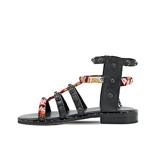 QUEEN HELENA Sandali alla Schiava in Pelle Bassi Casual Borchiati Donna S-36 (Nero, numeric_40)