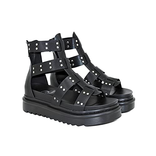 QUEEN HELENA Sandali alla Schiava Platform Borchiati Donna X24-65 (X24-65 Nero, numeric_39)