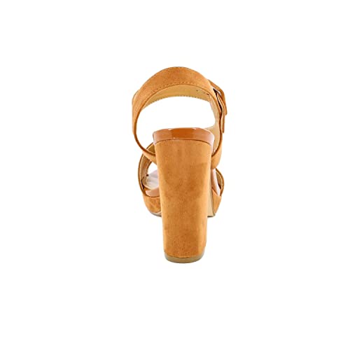 QUEEN HELENA Sandali con Tacco Aperti a Fascia Incrociata Donna ZM6083 Cammello 38