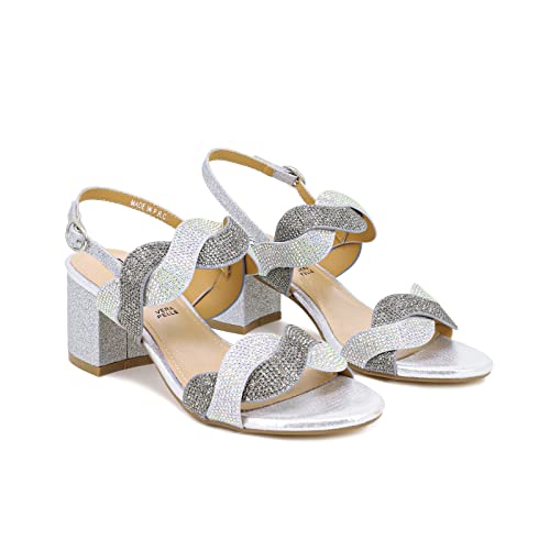 QUEEN HELENA Sandali con Tacco Basso Scarpe Eleganti con Strass Donna ZM8044 (Argento, Sistema Taglie Calzature EU, Adulto, Numero, Media, 36)