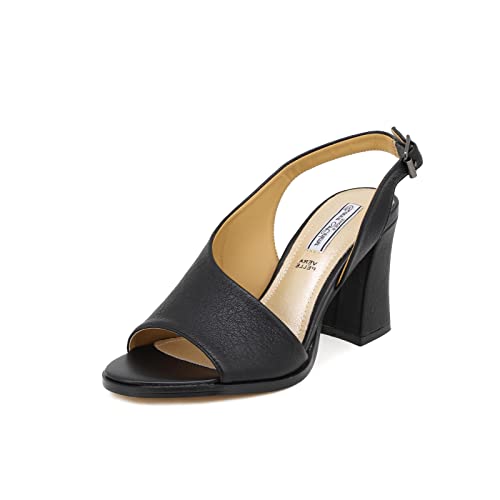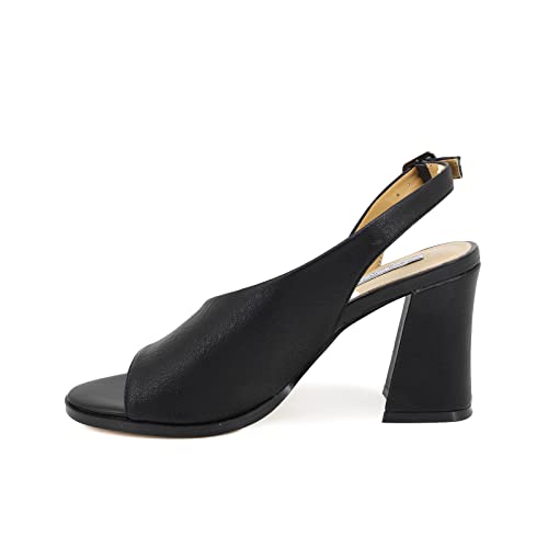 QUEEN HELENA Sandali con Tacco Medio con Cinturino Casual Donna ZM9023 (ZM9024 Nero, numeric_40)
