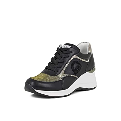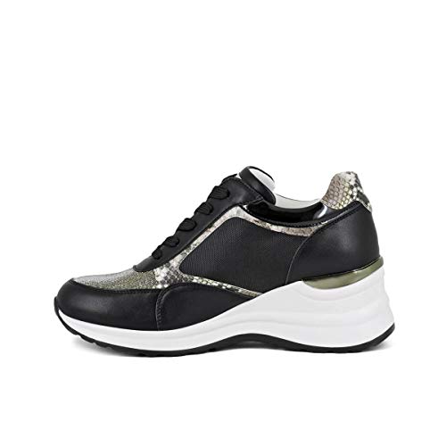 QUEEN HELENA Scarpe Alte da Ginnastica Sneakers con Zeppa Platform Casual Donna X24-3 Nero 40